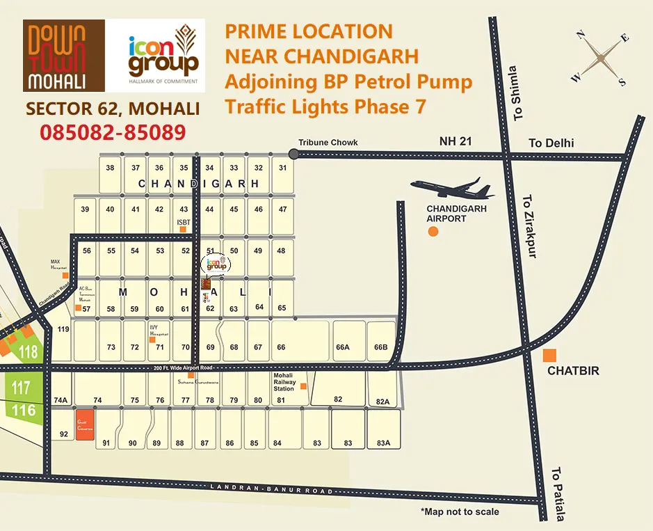 Downtown Commercial Project by Icon Group. Investment in Mohali Prime Location Commercial Property Showroom, Bay Shops, Retail/Office Spaces, Food Court ETC. Strategically situated in Icon Group Phase 7 & 8 Traffic Lights, the development has been designed keeping in mind the specific needs of various verticals. Where shops get the frontage for unobstructed visibility, restaurants benefit with scenic views and double-height terraces. To maximize productivity, the development ensures office spaces get the much required privacy and solitude. Designed to allure and crafted with sheer elegance, the state-of-the-art interiors of Downtown Commercial Project by ICON GROUP MOHALI Phase 7 & 8 Traffic Lights, Sector 62 astound you of the very first glance. It is the sheer opulence that leaves o mark on you and instills a sense of pride. When you own o business in such a lavish setup, you know you have grabbed the spotlight and success will definitely follow suit. DOWNTOWN MOHALI - Commercial Project by ICON GROUP MOHALI Ram Leela Ground, Phase 7 Traffic Lights, Ajoining Kosmos Hospital. Downtown Mohali New Commercial Project for investment in Mohali Prime Location Commercial Property Showroom, Bay Shops, Retail/Office Spaces, Food Court is Commercial property for sales office contact us 085082-85089.